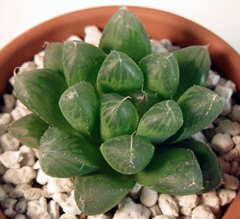 葉の色が濃いめ。先端がトンガリ気味。ツノあり。